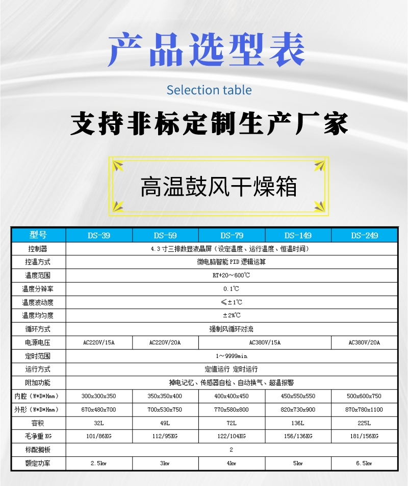 1、高温鼓风干燥箱也叫高温烘箱,是一种新型的高温设备,广泛用于机电、化工、塑料、轻工等行业及科研单位对各种产品、试品试件进行烘培、干燥、固化、热处理及其它方便的加热。高温干燥箱外形美观,使用方便,控温灵敏精确。