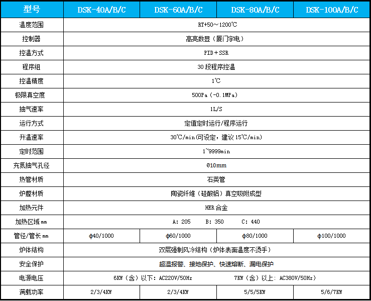 真空管式炉(1200℃) 真空管式炉(1400℃) 真空管式炉(1700℃) 四、产品亮点