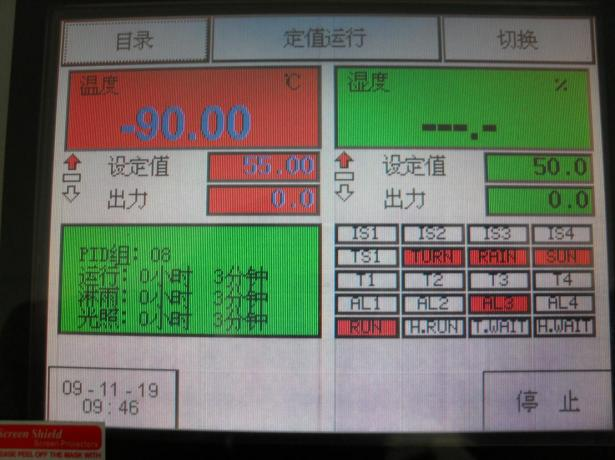 本公司自行研发的智能辐照测量调节系统,包括16位真彩触摸屏控制显示界面和北京师大光电生产的辐照测量传感系统及专用光纤,显示界面如下: